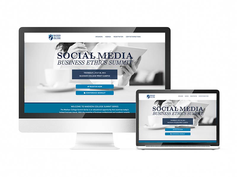 Madison College is always looking for ways to keep on top of the latest industry standards and connect employers to the college community. One of their latest projects in this arena is the Summit Series–a recurring mini-conference event with each occurrence focusing on a different topic. What unites the events is their focus on the latest, hottest business trends. To help promote the event, we created a responsive site that makes it easy to register and look up event details. To promote the event, we created a pre-conference mailer and a corresponding conference booklet.